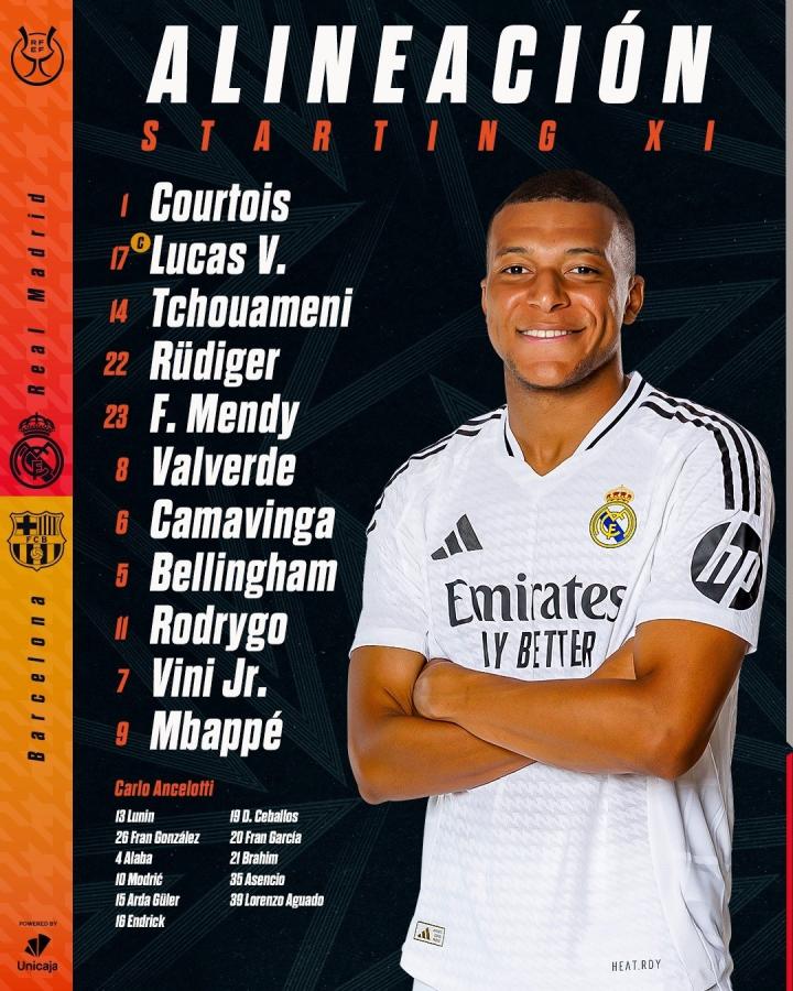 比赛开始前,皇马的首发名单率先出炉。门将是库尔图瓦,而后卫线上排出的是巴斯克斯、楚阿梅尼、吕迪格和费兰-门迪,中场的组合是卡马文加、费德里科-巴尔韦德和贝林厄姆,锋线上则有罗德里戈、维尼修斯和姆巴佩的组合。这一阵容显示了主帅的野心和信心,希望能够在这场关键的比赛中取得胜利。